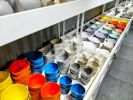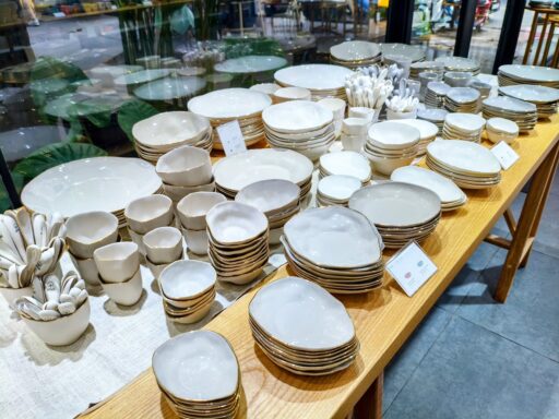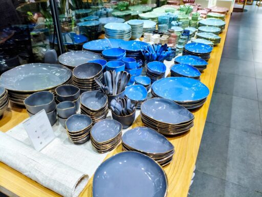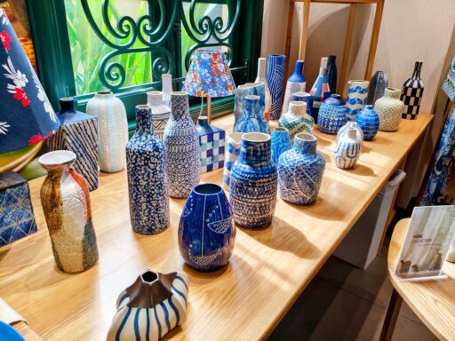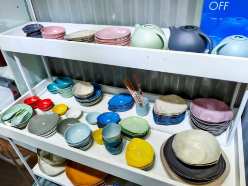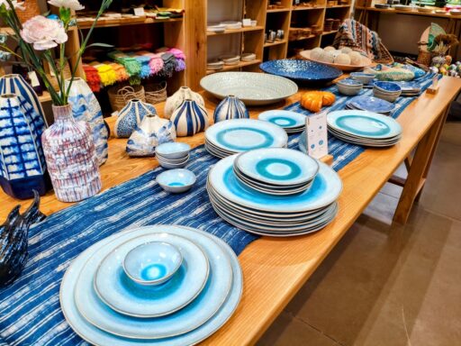 ディスプレイされた食器は、まるでギャラリーのように整然と並べられ、ゆっくりと見て回ることができます。