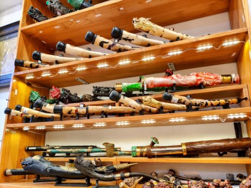 現代では使う人は減少していますが、特に北部のハノイなどでは、おじさんたちが路上でこのパイプを使ってタバコを嗜む姿をよく見かけます。