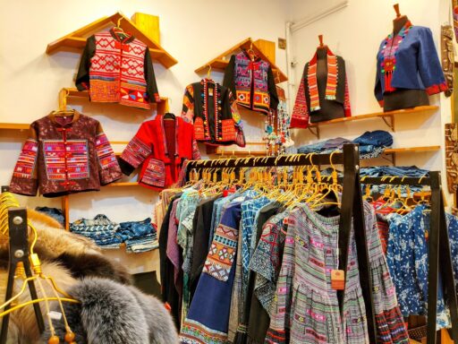 ベトナム北部山岳地帯に住む少数民族の衣類は、その細やかな幾何学模様や緻密な刺繍、手織りの生地が特徴的。