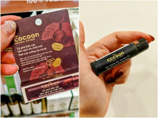 特にバラマキ土産にオススメなのが、この2つ。左はダクラク省のコーヒーリップスクラブ、ベトナムコーヒーの香りがまた良いのよね♡(値段は忘れたけど、お手頃価格)