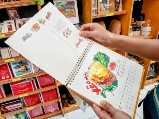 英語やベトナム語で書かれたものが多く、装丁も美しいのでインテリアにも良いですよね。お土産にも人気のカレンダーは、ベトナム料理が描かれています。