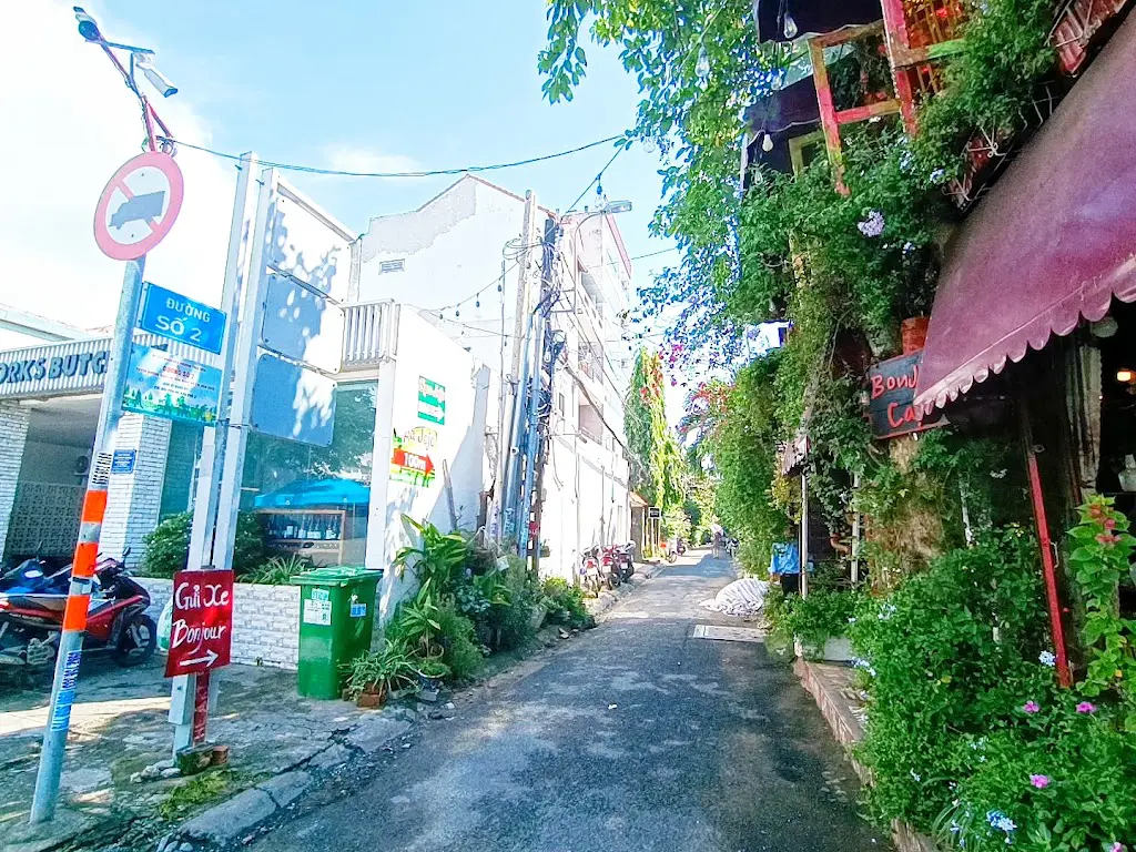 Thao Dien通りと交差する2番通り。この入り口右側にはパリをイメージして作られた(らしい)色鮮やかな花や植物で彩られたカフェ「Bonjour Cafe The Art」があります。