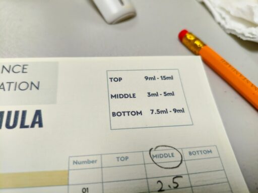 香水作りが初めてだと、「TOP」「MIDDLE」「BOTTOM」ってどうやって決めるのか難しいですよね。
