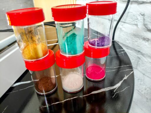好きな色を入れて、マシーンで混ぜる