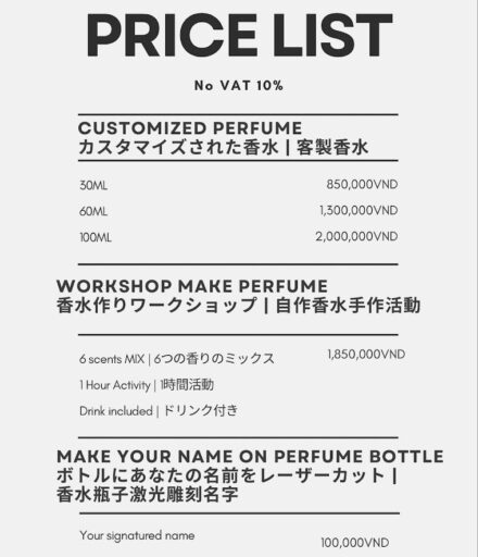 | 店名 | Beauty Lab Perfume-Customized Perfume in Vietnam |