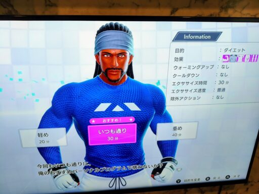 最初は食事管理アプリ「あすけん」で食事の見直し(白米は米一族の薄皮玄米に変更)、家でできるほうが楽なので、Switch「フィットネスボクシング3」で運動もしたりと。慣れてきたら少しずつストレッチも追加してみたり。
