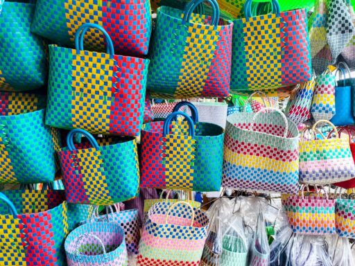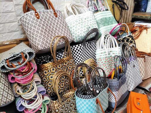 一歩足を踏み入れると外の喧騒とは対照的に、どこか懐かしく落ち着いた空気が広がる。壁際から天井近くまでぎっしりと並べられたプラカゴの数々は圧巻で、サイズ、形、色、模様が少しずつ異なります。