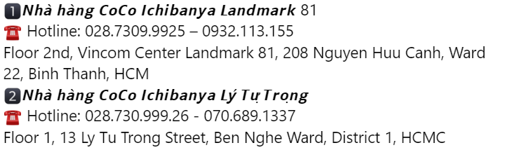 | 住所 | ①Floor 2st, Vincom Landmark 81, 772 Dien Bien Phu Street, Ward 22, Binh Thanh District, HCMC ②Floor 1,13 Ly Tu Trong street,Ben Nghe ward,District 1,Ho Chi Minh city,Vietnam |