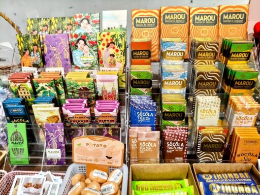 基本的には自社ブランドのデザインのお土産品を販売していますが、この旧市街支店はベトナム産チョコレートも販売していました。思わずパケ買いしたくなる人気のチョコレートバーなので、あと少しお土産足したいなって時に!