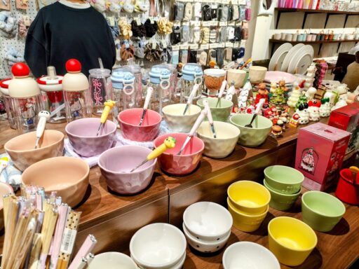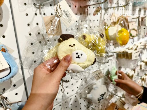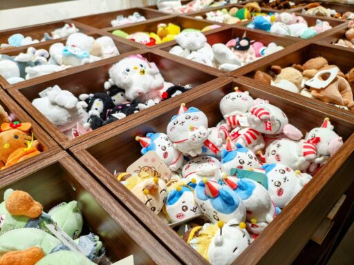 ユニークなデザイン、キティちゃん・ちいかわなど日本でも人気のキャラクターのぬいぐるみもずらり。小学生くらいの時、これくらいの大きさのぬいぐるみ好きだったなぁ~娘も次はこれ買う~!ともう次に買うものを決めておりました笑