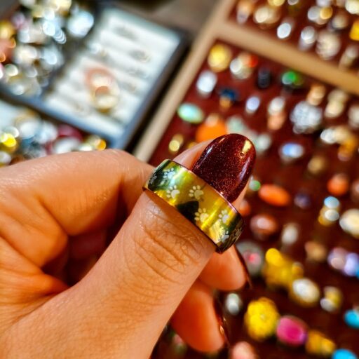 リングもひとつひとつ見ていると、他とはかぶらないユニークなデザインも沢山。このリングめっちゃ欲しかったけど、親指でもサイズが大きかったので断念。。
