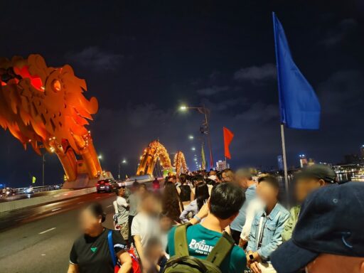 週末にダナンに遊びくるなら必ず観ておきたいですよね!しかし、場所選びを間違えると、「人混み」「ずぶ濡れ」「渋滞」の罠もあり...。大迫力の「火の熱」を感じたいなら、橋の上へ。快適に、写真も綺麗に、そしてスマートに帰りたいなら、ハン川西側の遊歩道へ!