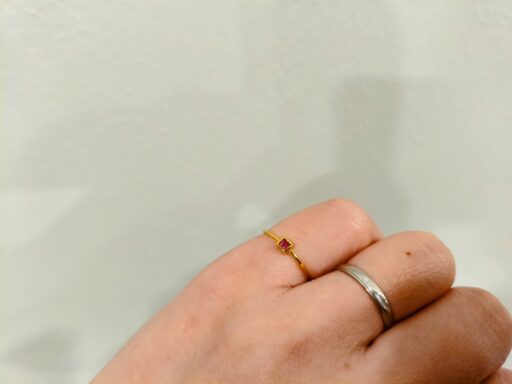 華奢なリングも欲しいなぁってことで、ビビったきた「ピンクトルマリン」に。肌なじみがよく、手元にパッと明るい彩りを感じさせてくれます。