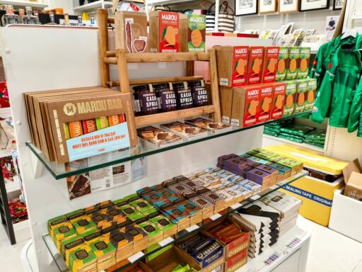 ベトナム産クラフトチョコレート ベトナムの代表ブランド「Marou(マルゥ)」や「SAVALL Chocolate(サバルチョコレート)」をはじめとする、カカオ本来の風味を生かしたチョコレートが並んでいます。