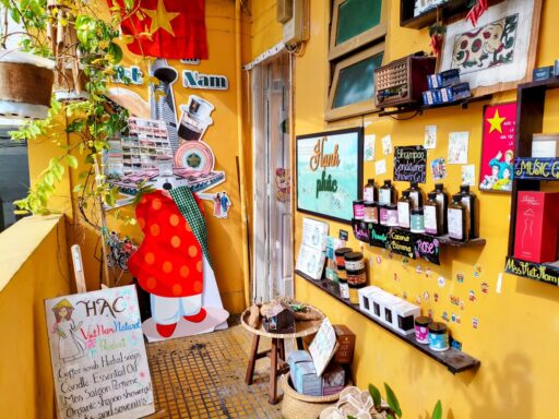 こちらのカフェアパートにはベトナム土産に人気のトートバッグ専門店「The E.Y.E Saigon」を始め、様々なカフェや雑貨店が集まっています。『HAC-Natural Beauty Care』はカフェアパートの3階と5階にあるので、お好きなほうに行きましょう!