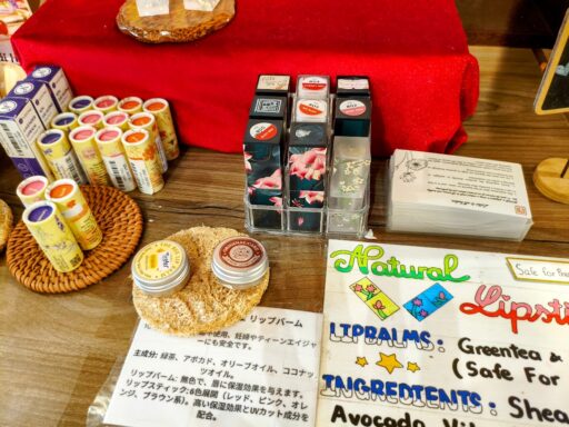 全体の写真を撮影するのが抜けておりましたが(商品に気を取られてついつい...)店内ペースとしては広くはないですが、敷地いっぱいに様々なベトナム天然コスメが販売しています。