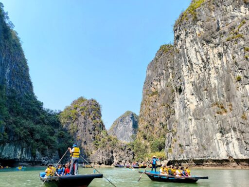 その後は「ルオン洞窟」へ。手漕ぎボートに乗り換え、静かな水面を進みながら洞窟をくぐり抜ける体験は、非日常感たっぷりで非常に好評。