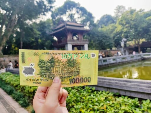 10万ドン札と記念撮影
