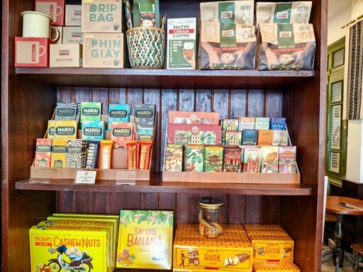 早速お土産エリアのちょっと手前から紹介しているけど笑 ベトナム産の有名チョコレートやコーヒー、お菓子もずらり。