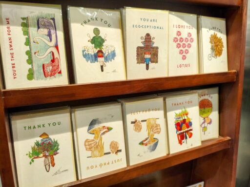 比較的にシンプルなデザインが多いけど、インテリアを邪魔せずにさりげなく部屋に飾られるのでよいよね。写真撮り忘れてましたが、定番土産のポストカードもあります。