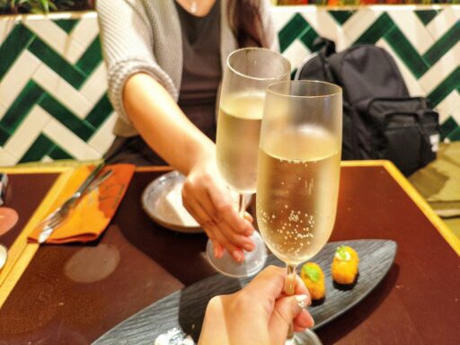 スパークリングワインで乾杯と女子会っぽい!こちらのスパークリングワインは、きめ細やかな泡立ちと柑橘系や花のようなフレッシュな香りが特徴。