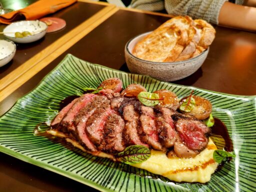グリルされたシャロットの甘みも絶妙な、満足感のある一皿。200gという満足感のあるボリューム、うまーー!