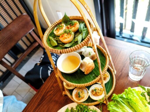 中部の伝統的な米粉料理を少しずつ楽しめるこのコンボ。竹ザルのアフタヌーンティーっぽい提供方法で、、、旅行っぽくて良い!