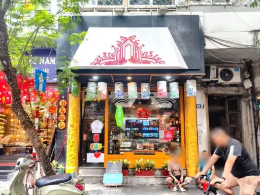 外観には店名が書いてないので「ココで合っているよね...?」とちょっと心配になりながら。近くにはハノイ大教会の他にも、ベトナムお土産店「コレクティブ・メモリー」や「CUL CAT」など。