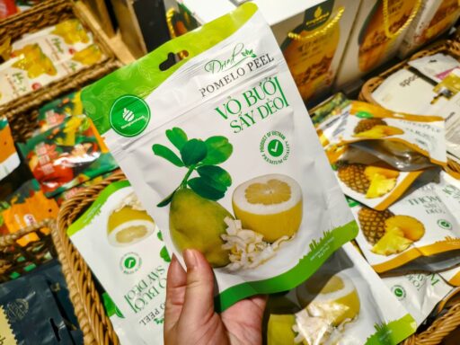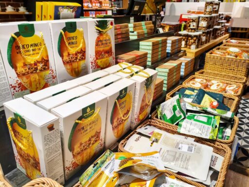 まず目に留まったのは、ベトナム定番土産のドライフルーツ。上記画像の手前に写っているのは、「Nonglamfood」社の塩唐辛子ドライマンゴー。
