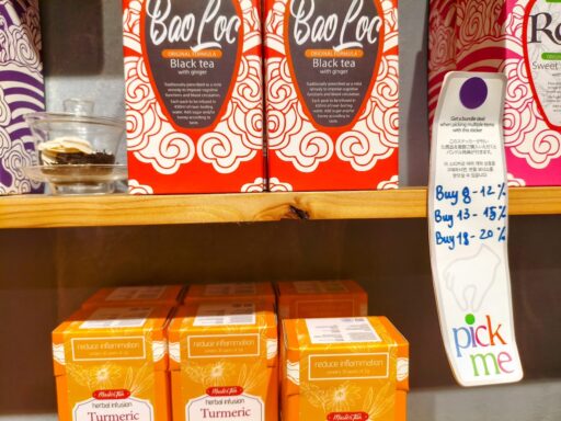 厳選したオーガニック商品・ベトナム土産の人気商品・健康茶など幅広いラインナップのアイテムを販売。販売スペースはあまり広くはありませんが、商品の試飲試食ができる安心感(※一部商品は不可)