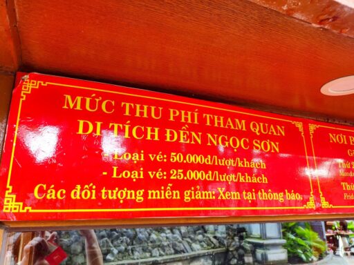 玉山祠のチケット料金は1名につき、50,000ドン(約280円)。年齢が15歳以下は無料になります。