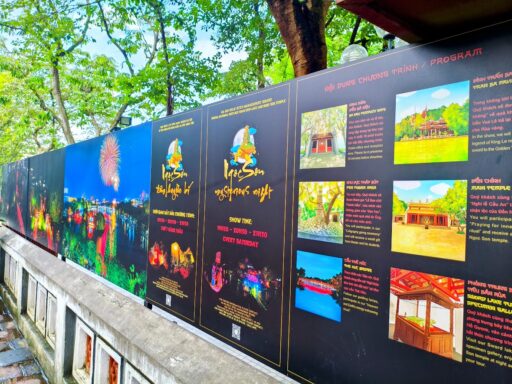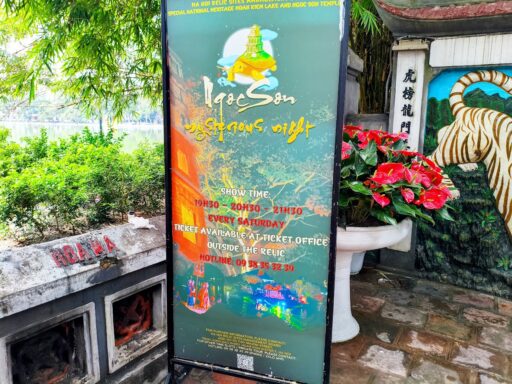 朝の涼しい時間帯でホアンキエム湖をゆっくり眺めながら見るのも良し、日没後ならライトアップされた様子も素敵ですよ~!ぜひ。