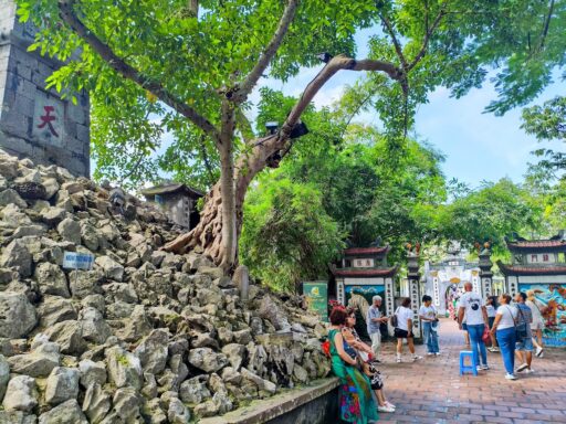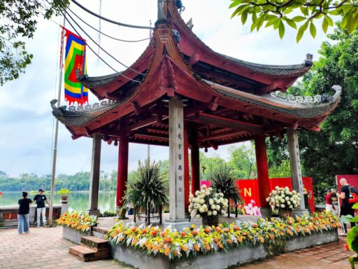 - ホアンキエム湖に浮かぶ小島に建つ歴史ある寺院