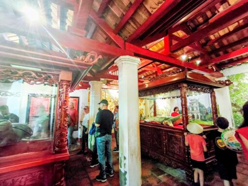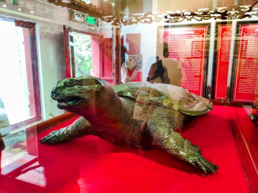 玉山祠の一室には、ホアンキエム湖で長年親しまれてきた「伝説の亀」の剥製が展示されています。正直、部屋は結構狭いので、訪れる人の人数を見ながら見学したほうがいいかと~