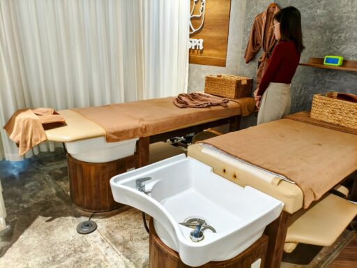シャンプーしたら移動するのかな?と思いきや、このままマッサージ台にも変えられるお部屋へ。ちなみに今回は受けていないですが、ボディやフェイシャルマッサージ台の場合は専用のベッドがある部屋で施術になります。