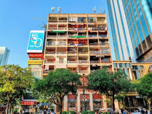 ホーチミン市1区中心地、歩行者天国Nguyen Hue(グエンフエ)通りににある9階建てのカフェアパート。他にも雑貨店など色んなお店が入っているので、中心地に来たら是非寄っていただきたいスポットです。
