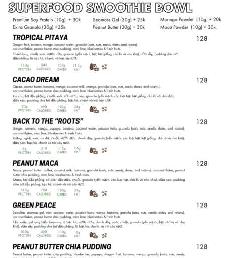 全体的に、健康を意識しつつも「美味しいものをしっかり食べたい!!」って方にぴったりのラインナップ。価格帯は料理によるけど、飲み物含めて300,000vnd(約1,800円)ぐらいを予算にしておくと良いかと!