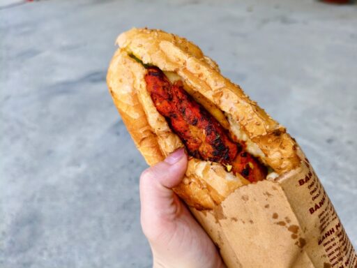 こちらは娘チョイスの「チキン&チーズバインミー」。鶏むね肉が使われているようで、脂っこさがなく、炭火焼き特有の香ばしい風味がしっかりと楽しめます。
