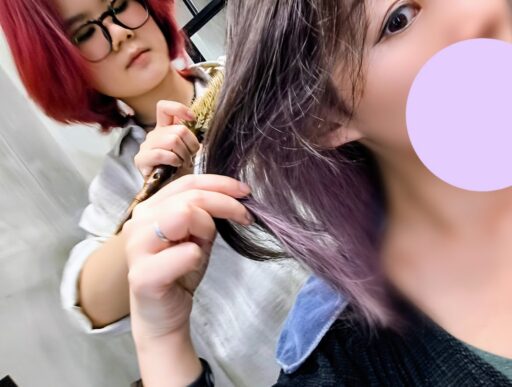 前からやってみたかった、ベースは寒色系にして、インナーカラーを薄目の紫にしてもらうことに♡ 『Rapi-rabi』さんは日本人&タイ人のカラーリストさんがおり、日本人の方を希望する場合は早めに予約しましょう!