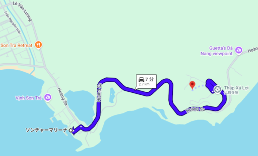 リンウン寺から『Son Tra Marina』までGrab(配車アプリ)の利用すれば、すぐにたどり着けます。同じ観光ルートで行く旅行者も多いので、ドライバーさんも慣れているので安心。