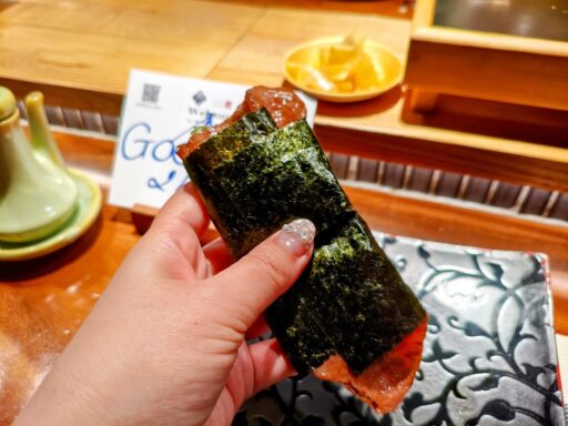 これをパリッとした海苔で巻いていただくのが、鮨青山の特別な食べ方。もう絶対美味しいやん!!