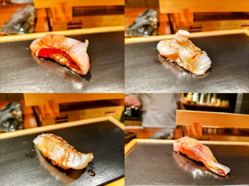 ヒラメやタコ、長崎産のイサキなど。目の前で丁寧に握られた鮨は、温度やシャリのほどけ方、ネタの仕込みまで、職人の技が細部に宿っているのが伝わってきます。