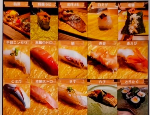前菜や巻物を含めた15種類から選んでいきます。その日の旬の食材を使ったお寿司となるので、メニュー写真からは少し異なる場合もあります。