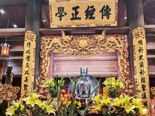 内部は博物館のようになっており、かつての教室や寄宿舎が再現されているほか、国子監教師であったチュウ・ヴァン・アン(Chu Van An)の像や、教育の発展に尽力した三人の皇帝の像が祀られています。