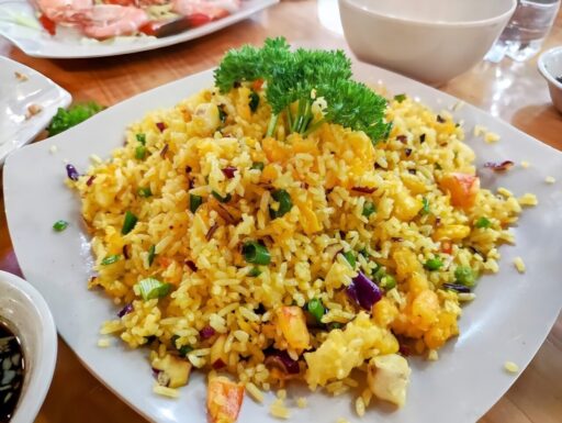 味付け自体は非常にシンプルですが、中に入っているエビやイカがとにかく新鮮。具材自体のプリプリとした食感を楽しめる、シーフード店ならではのチャーハンです。ボリュームもしっかりあるので、数人でシェアするのにもぴったりです。
