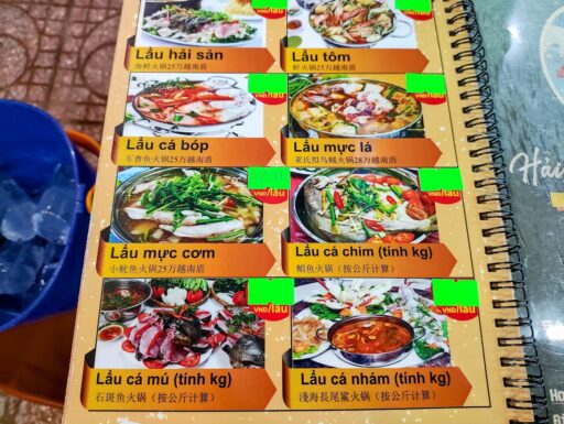 表記はベトナム語と中国ではあるものの、基本的にはメニューに写真が全て掲載されています。チャーハン(Cơm chiên)だけでも8種類あり、海鮮だけでなく野菜炒めや麺料理も充実。