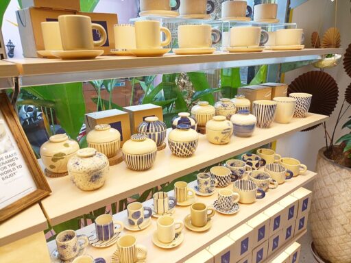色鮮やかに彩る青を貴重としたベトナム南部ソンベー焼きの人気の食器店『Tuhu Ceramics』の商品も!こちらもホーチミンで人気の食器でレストランでもよく取り扱われています。