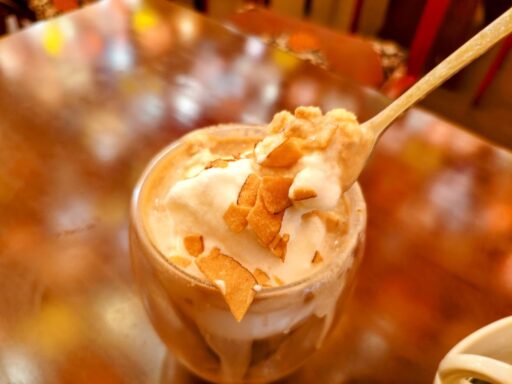 ベトナムコーヒーをベースに、優しいココナッツシャーベットの甘さが街歩きに疲れた体を癒してくれますね!