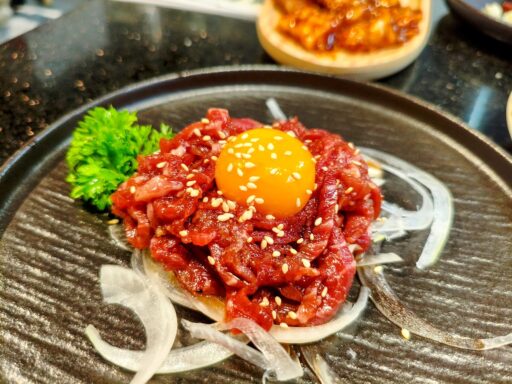 「やきまる」は徹底した衛生管理をされていることもあり、ベトナムでも安心してユッケを楽しめる貴重なお店の一つ。鮮度抜群の赤身肉が口の中でとろけるような食感。濃厚な肉の旨みが口いっぱいに広がるーー!!