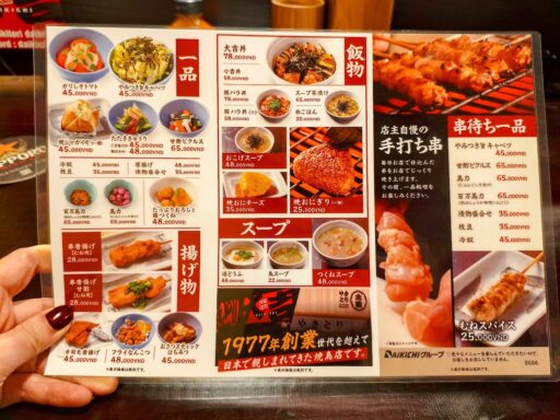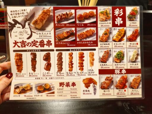 焼き鳥1本 18,000ドンからのお手頃価格!全て日本語&写真付きで分かりやすい
